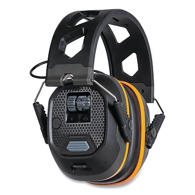 The stylish orange, black, and gray design not only looks great but also ensures maximum durability and comfort throughout the day. With Bluetooth connectivity, you can easily stream music or take calls without compromising on hearing protection. This makes them perfect for construction sites, workshops, or any noisy environments.
