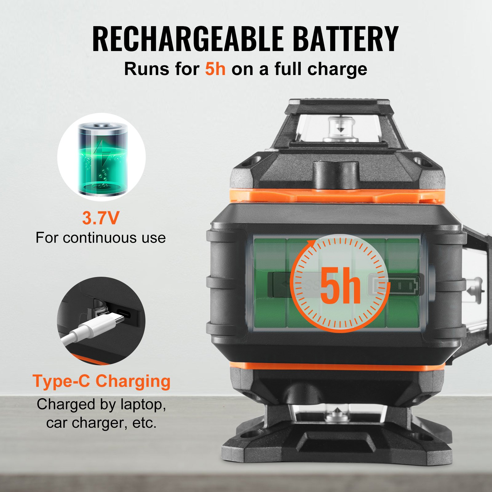 VEVOR Laser Level, 100ft, Self Leveling Manual Green 4 x 360° Cross 16 Line Laser, IP54 Waterproof Remote Control Manual Self-leveling Mode & 5h Continuous Working Time Line Laser, Battery Include