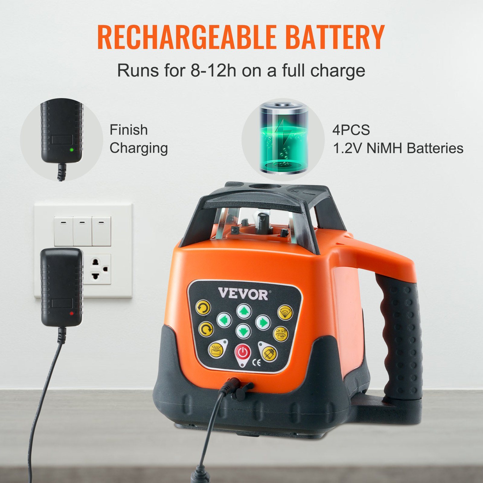 VEVOR Laser Level, 2000ft, 360 Degree Self Leveling Green Cross Line Laser, 5 Rotation Speeds & 4 Scanning Angles Adjustment, IP66 Waterproof Remote Control Manual Self-leveling Mode, Battery Included
