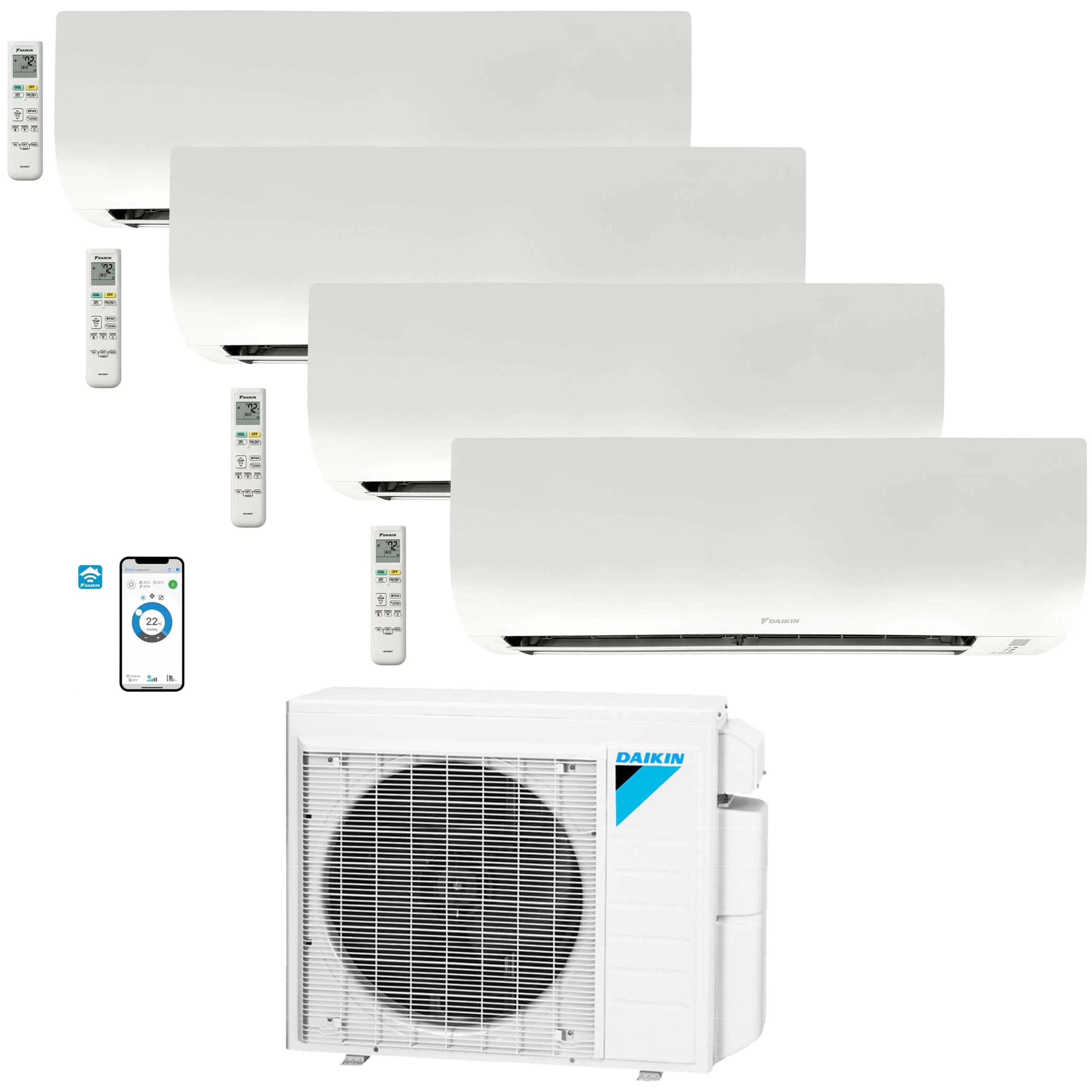 Daikin 4-Zone Wall Mounted Ductless Mini-Split 36,000 BTU Heat Pump Air Conditioner 9k+9k+9k+9k - 20 SEER2 R32 Wi-Fi Enabled