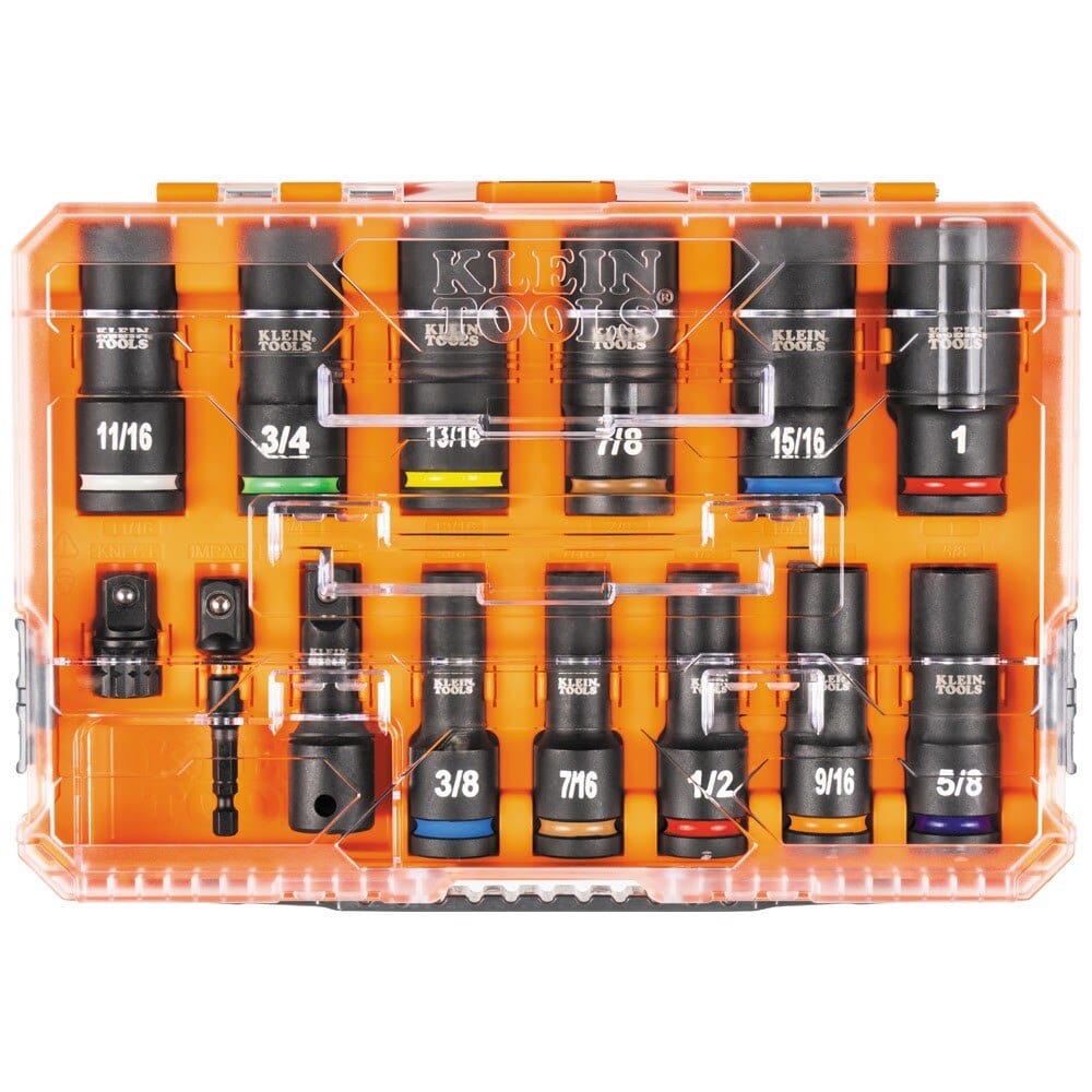 Klein 65111IMPCT KNECT 1/2" Drive Deep Well Impact Socket Set, SAE, 14-Piece
