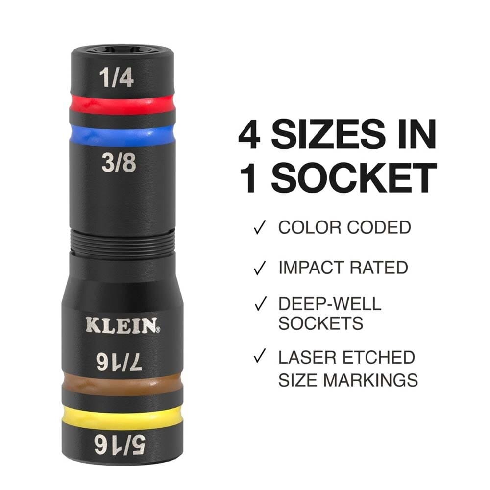 Klein 653QS KNECT Quad-12 Deep-Well Heavy-Duty Impact Flip Sockets, SAE, 6-Piece
