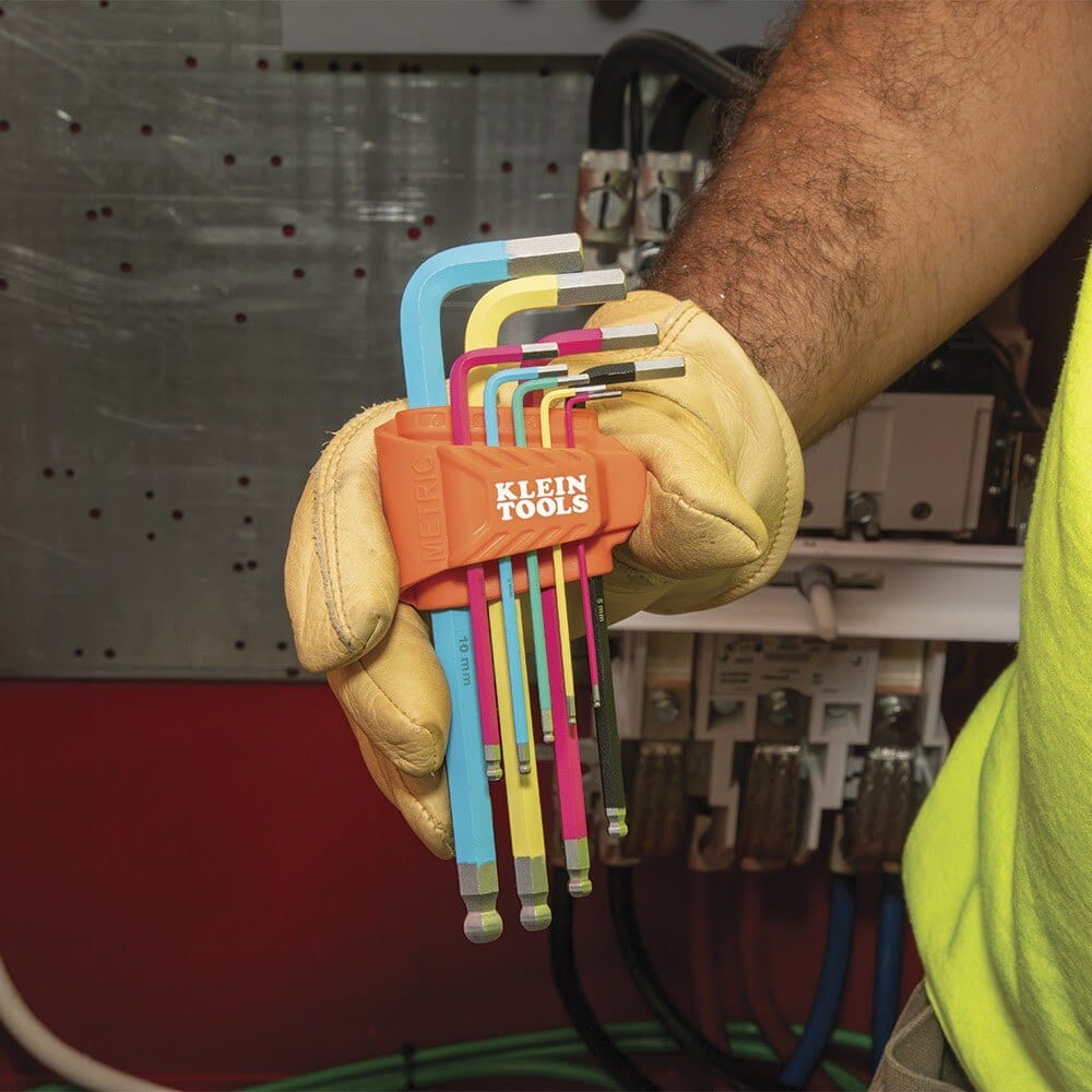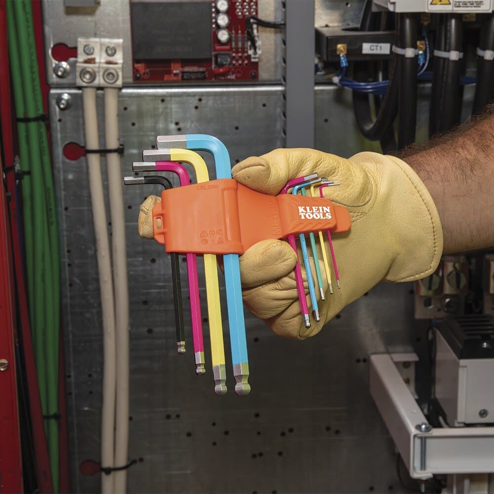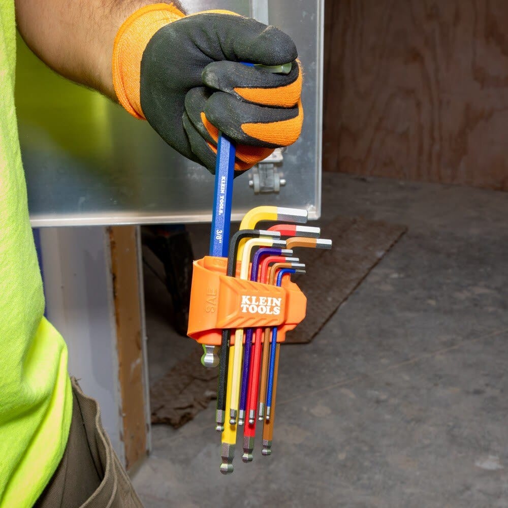Klein CBLS19 Powder Coated Long Ball End Hex Key Set, SAE and Metric, 19-Piece
