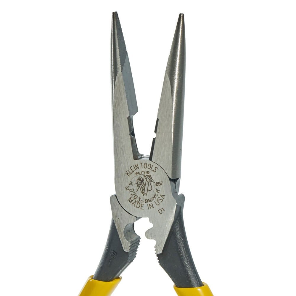 Klein Tools D203-8NCR Pliers, Long Nose Side Cutters, Strip/Crimp 8"