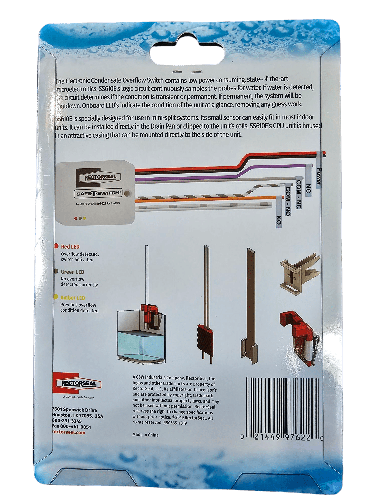 Rectorseal SS610E Multi-Voltage Mini Split Condensate Overflow Switch