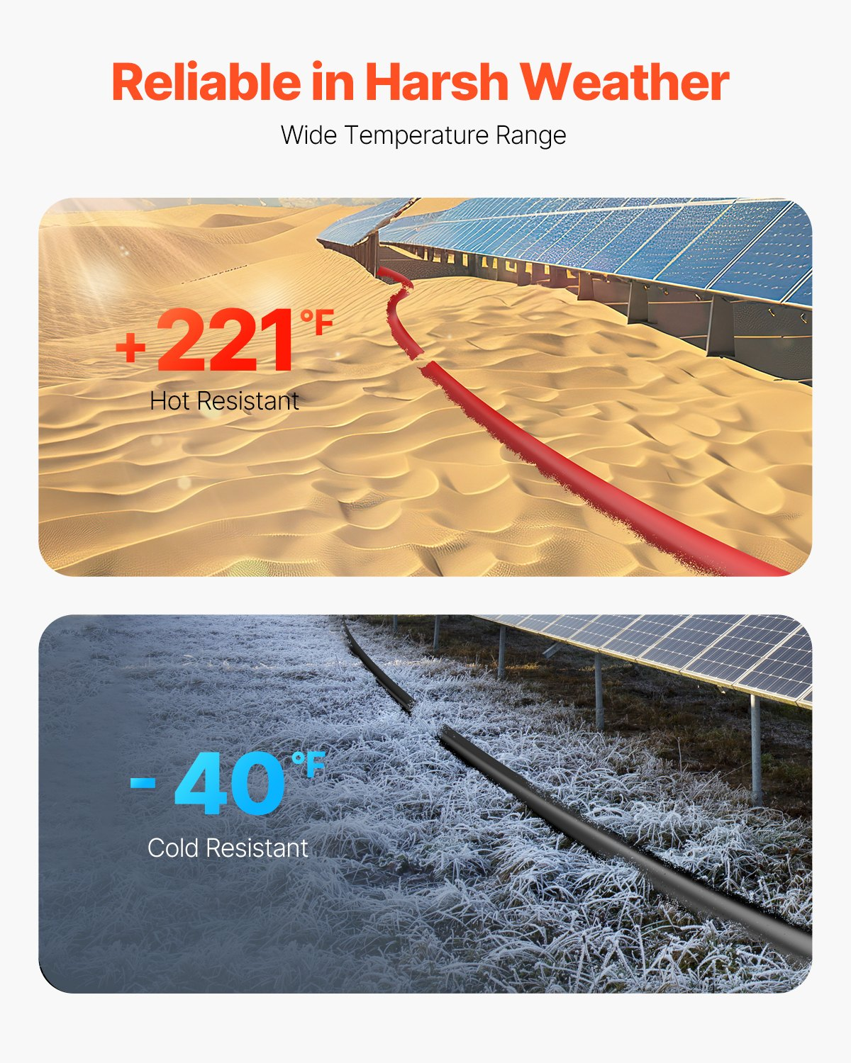 VEVOR 100FT Solar Panel Extension Cable, 10AWG Solar Extension Cable Wire with Female & Male Waterproof Connectors, 6mm² PV Cable for Home, Ship and RV Solar Panels, 100FT Black + 100FT Red (Set of 2)