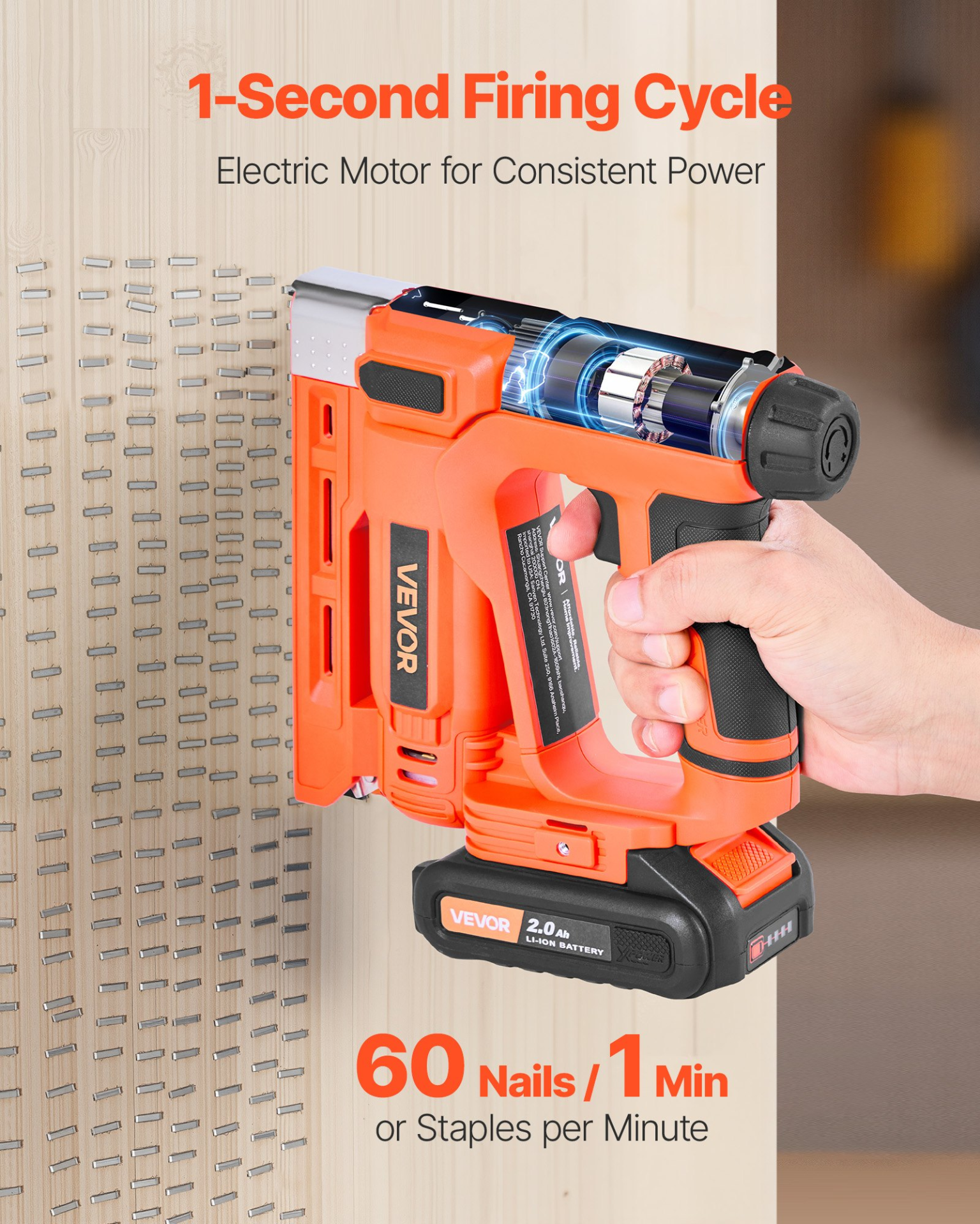 VEVOR Cordless Brad Nailer, 2-in-1 Nail Gun Staple Gun, 18 Gauge 5/8 inch, Includes 1000 Pcs Staples and 1000 Pcs Nails, with Battery and Charger, Non-Slip Rubber Grip, for Woodworking DIY Projects
