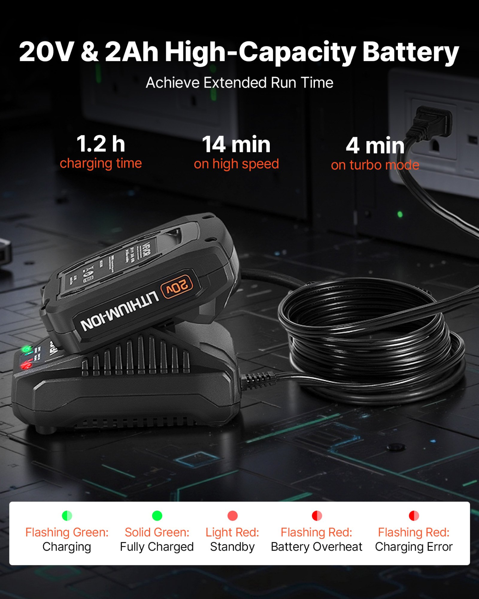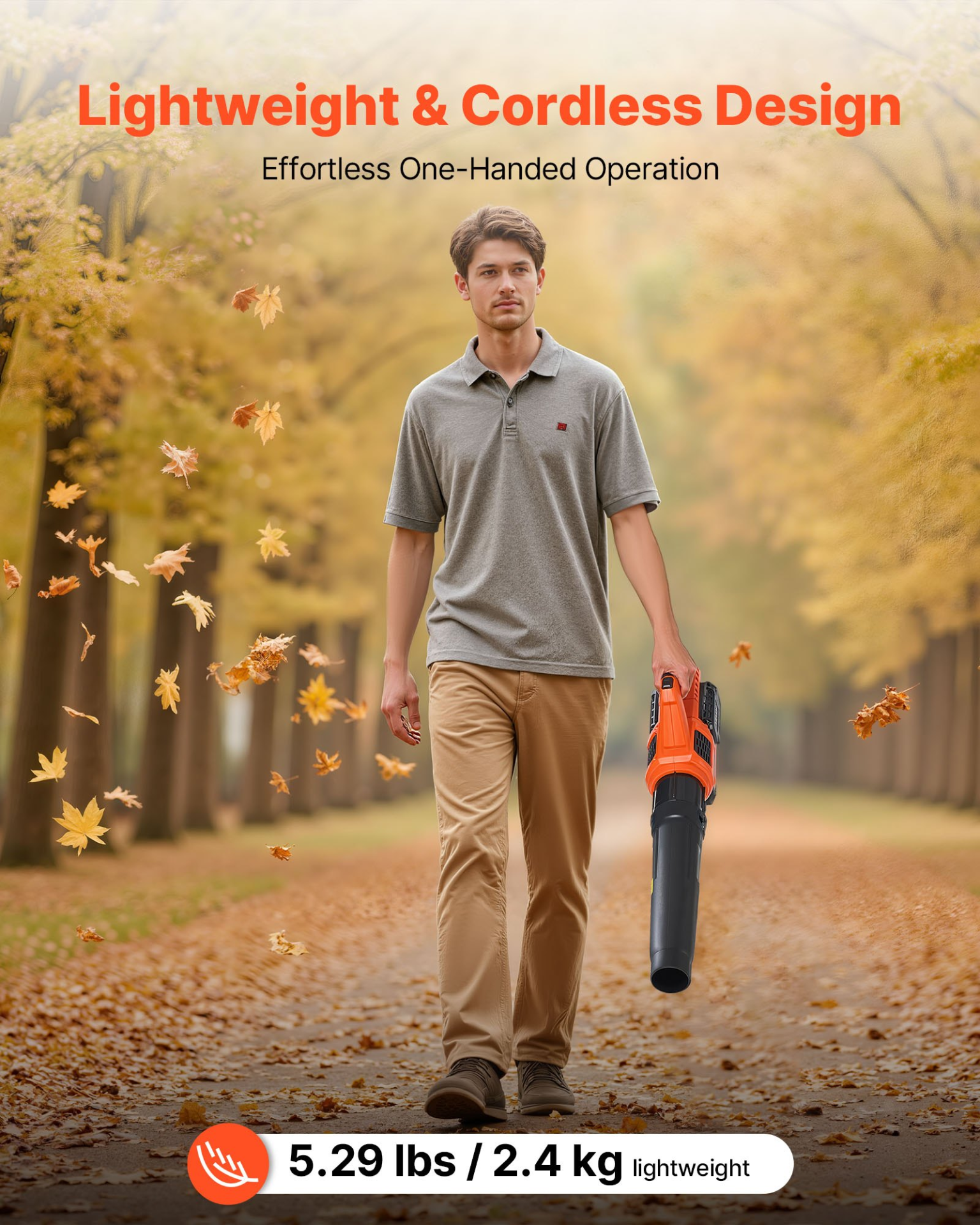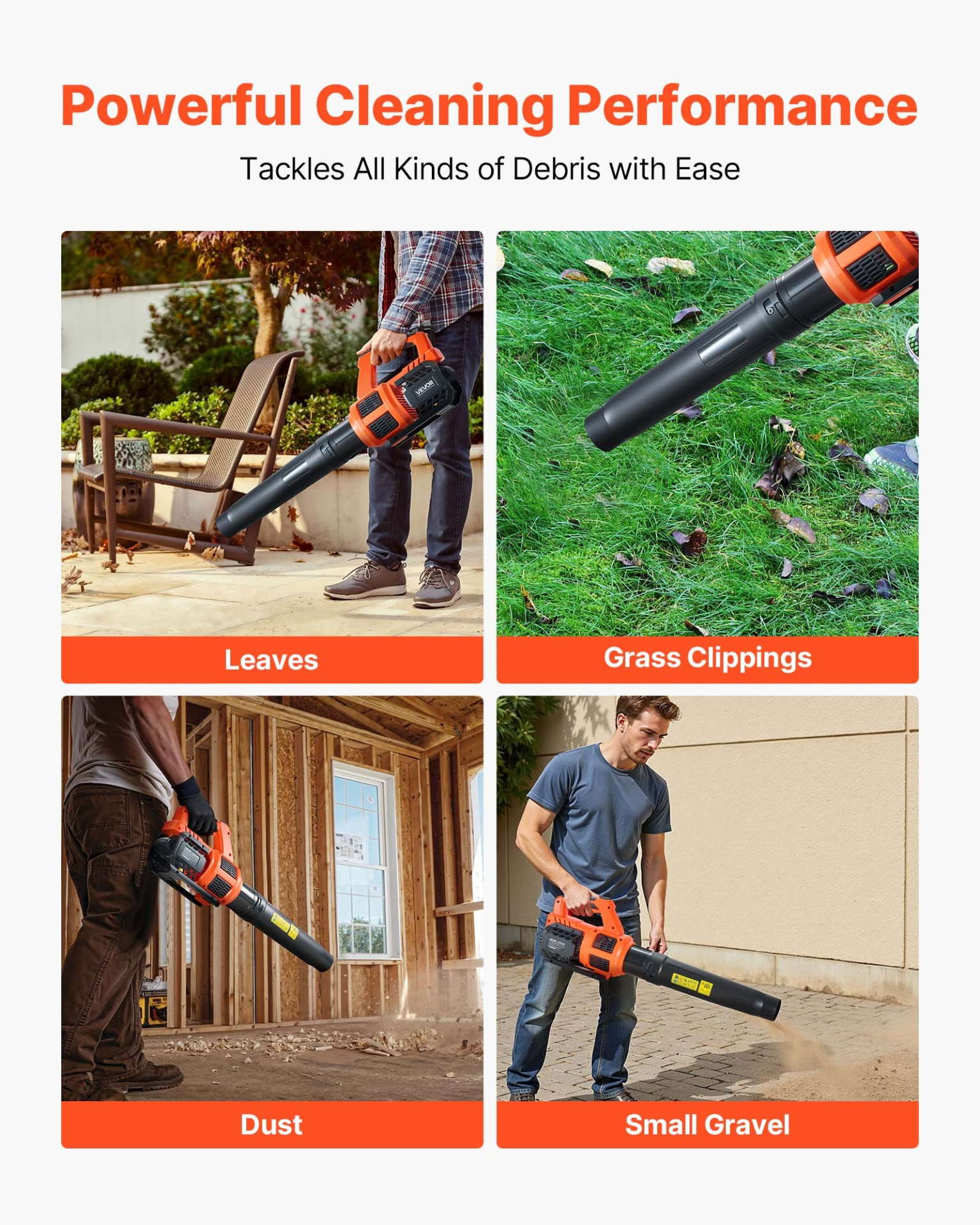 VEVOR Cordless Leaf Blower, 20V Powerful Electric Leaf Blower with 2.0Ah Battery, Fast Charging & Quiet Operation, 2 Speed Control, 450 CFM/110 MPH Lightweight Powered Blowers for Leaves Lawn Care