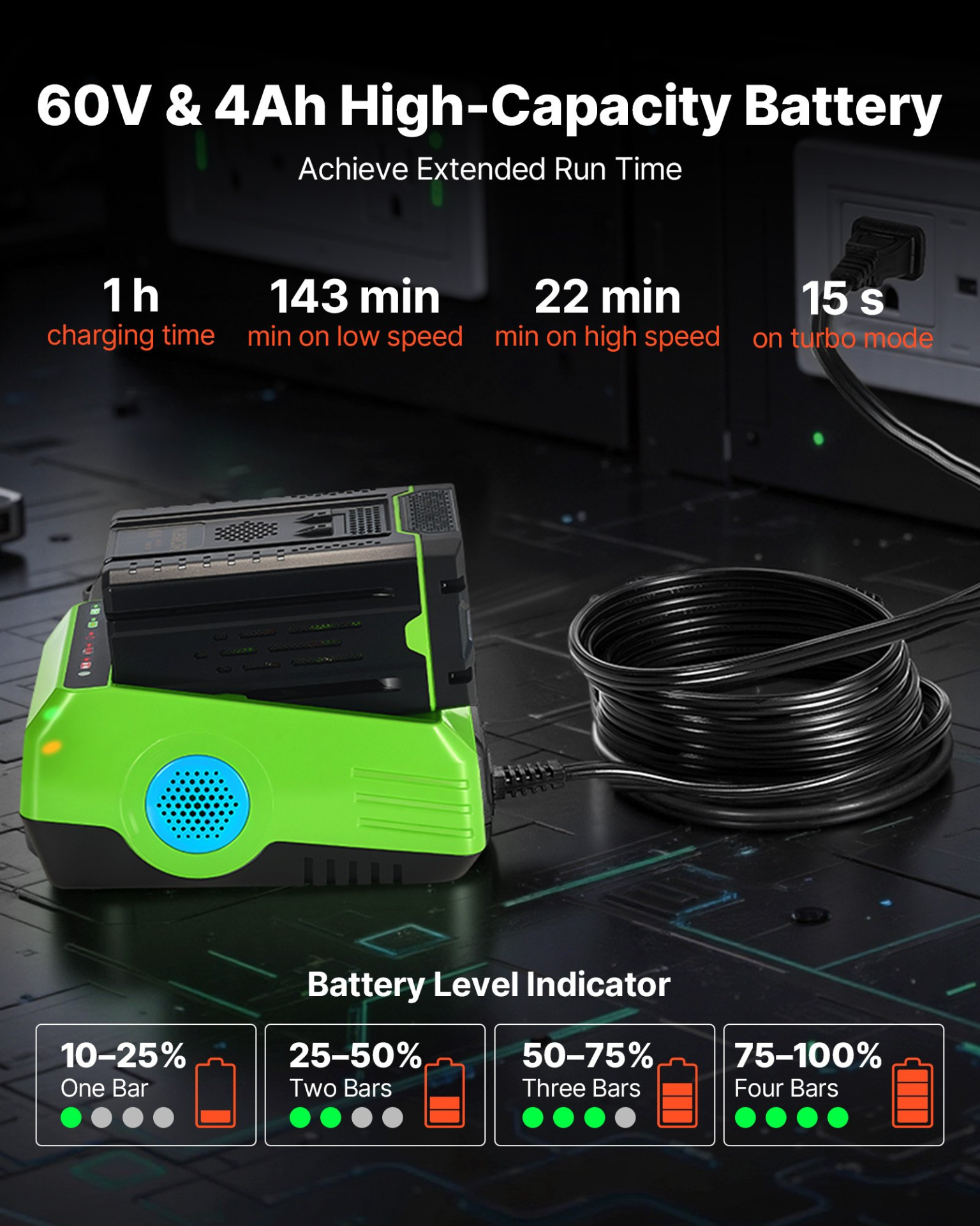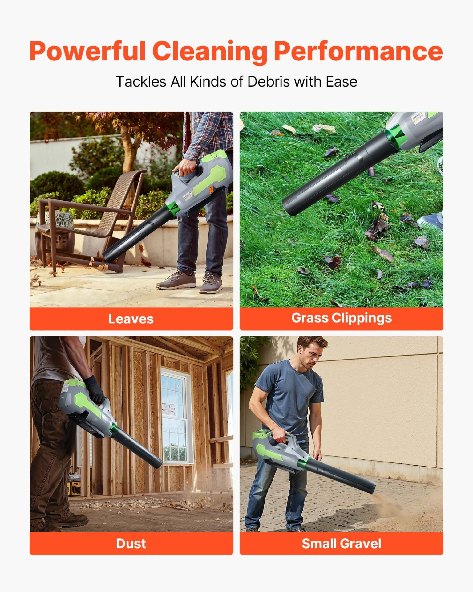 VEVOR Cordless Leaf Blower, 60V Powerful Electric Leaf Blower with 5.0Ah Battery, Fast Charging & Quiet Operation, 3 Speed Control, 650 CFM/125 MPH Lightweight Powered Blowers for Leaves Lawn Care