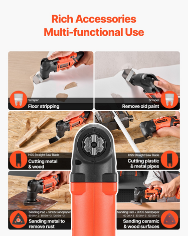 VEVOR Cordless Oscillating Tool, 20V Oscillating Multi Tool Kit with 6 Variable Speeds 8500 - 17000 OPM, 3.2° Oscillation Angle, 2.0Ah Battery Pack & Charger, 12PCS Saw Accessories & LED Work Light