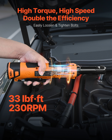 VEVOR Cordless Ratchet Wrench, 3/8 inch Drive, 230 RPM, up to 33 ft-lbs of Torque, Battery Powered Electric Ratchet Wrench Set with Two 2.0Ah Batteries, Charger, Sockets, Adaptor and Carrying Case