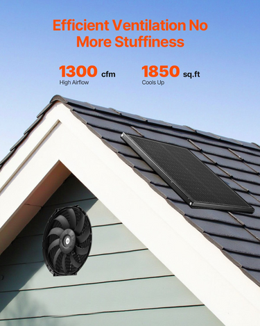 VEVOR Gable Mount Fan, 12 Inch Solar Power Attic Exhaust Fan with Adjustable Thermostat & Outer Mesh, 1300 CFM House Ventilator Cools Up to 1850 Sq.Ft, Quiet Ventilation for Roof, Garage, Shop, Black